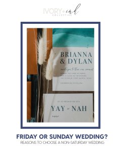 March 1, 2020 · Friday or Sunday Wedding – IVORY+ink Co This post may contain affiliate/referral links. It is a way for this site to earn advertising fees by advertising or linking to certain products and/or services.